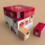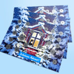 Kalendarz adwentowy w formie kostki z kieszeniami. Powierzchnię kalendarza można zadrukować indywidualną grafiką. W kostce znajdują się 24 otwierane okienka (format 55 x 55 x 55 mm), w których można pomieścić drobne prezenty. Otwieranie skrytek umili czas oczekiwania na Święta Bożego Narodzenia.